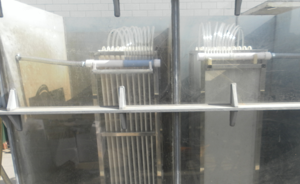 生物碳纖維平板膜組件是將過(guò)濾膜與生態(tài)碳纖維復(fù)合材料合理地結(jié)合在一起,對(duì)污水先經(jīng)過(guò)濾膜過(guò)濾,再經(jīng)生態(tài)碳纖維復(fù)合材料進(jìn)一步吸附凈化,提高了清水的純度和潔凈度并提高了平板膜組件的耐污性和膜通量及使用壽命。